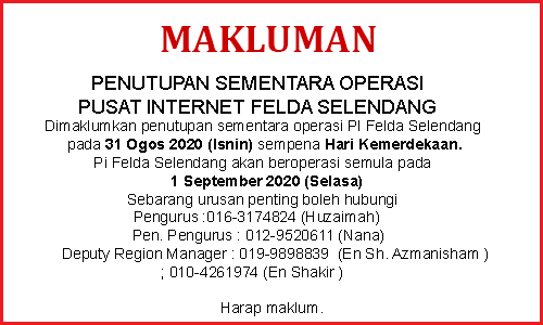 “ Berikutan pandemik Covid-19 di negara dan keputusan kerajaan untuk melaksanakan Perintah Kawalan Pergerakan, maka Pusat Internet akan ditutup mulai 18 Mac 2020 hingga 31 Mac 2020 di seluruh negara. Keputusan untuk menutup Pusat Internet adalah sejajar dengan […]
