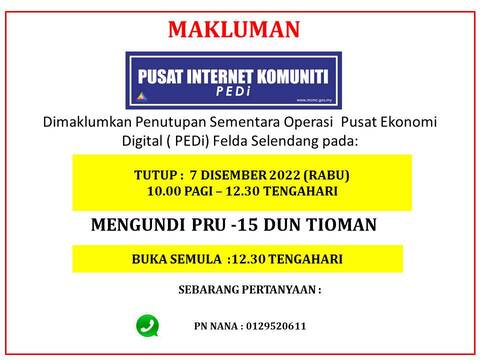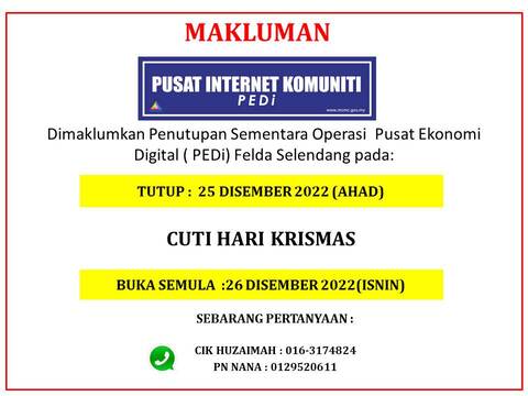 MAKLUMAN PENUTUPAN SEMENTARA KRISMAS
