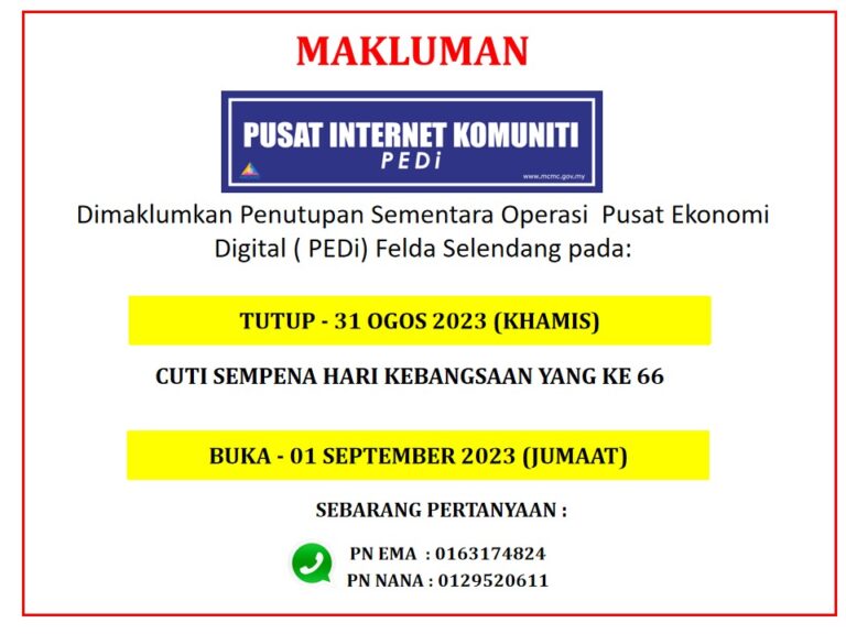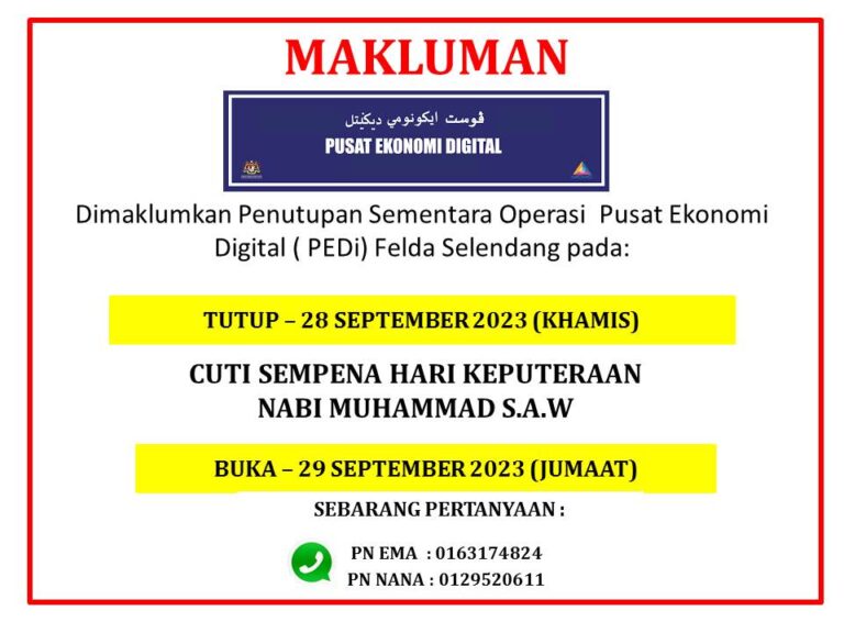 MAKLUMAT PENUTUPAN SEMENTARA PUSAT EKONOMI DIGITAL (PEDi) FELDA SELENDANG