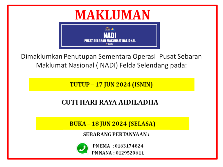 MAKLUMAN PENUTUPAN NADI SEMPENA HARI RAYA AIDILADHA