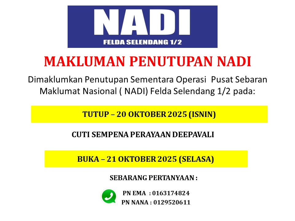 Makluman Penutupan Sementara Nadi Felda Selendang 1/2, sempena perayaan Deepavali.