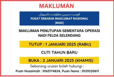MAKLUMAN PENUTUPAN SEMENTARA OPERASI NADI SEMPENA CUTI TAHUN BARU